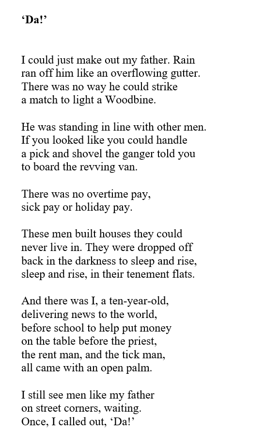 Third prize in our 2023 Open Poetry Competition was awarded to ‘Da!’, by Owen Gallagher.
