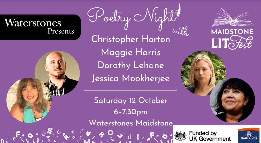 The first is Poetry Night, part of the Maidstone Literary Festival. It includes poetry readings by Maggie Harris, Jess Mookherjee, Dorothy Lehane and Christopher himself. It takes place on 12 October at 6pm, in the Maidstone branch of Waterstones. For more details and tickets, click here.
